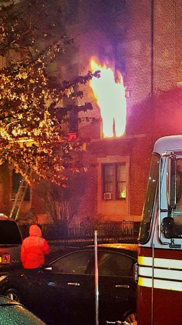 The Daily News reports that three people were injured and two apartments were gutted--the second floor apartment where the fire broke out and the apartment directly above it.